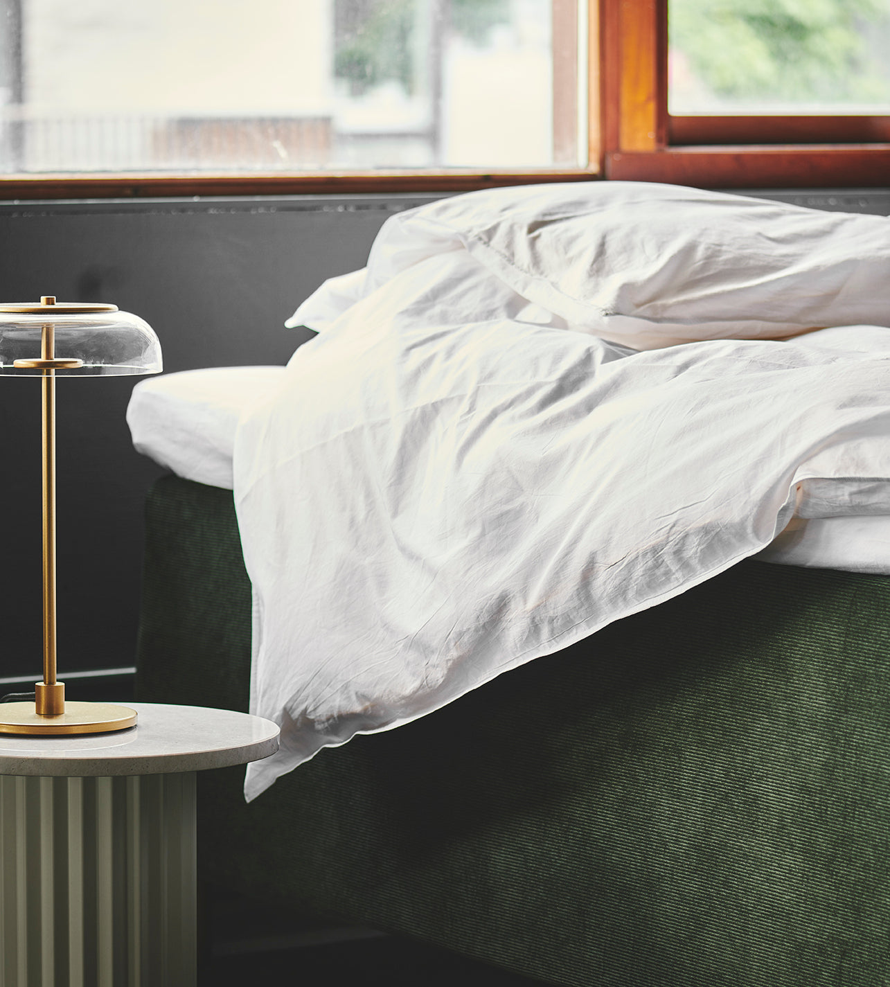 Du kan skabe hygge i soveværelset ved at dekorere sengen med lækkert sengetøj, pyntepuder og et flot sengetæppe. Vi har et stort udvalg af lækre tekstiler fra danske Aiayu i rolige farver, der vil skabe den helt rigtige stemning, der gør, at du glæder dig til at komme i seng hver aften.